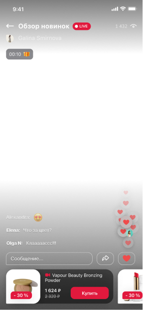 Когда бы ни подключились зрители — первым они увидят товар, которым пользуются в кадре.